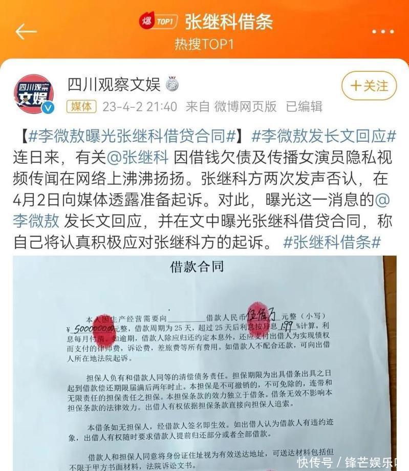 尽管张继科的工作室第一时间做出回应,但李微敖却晒出了多条证据,其中不仅有大量聊天记录,甚至还曝光了疑似欠条的照片。